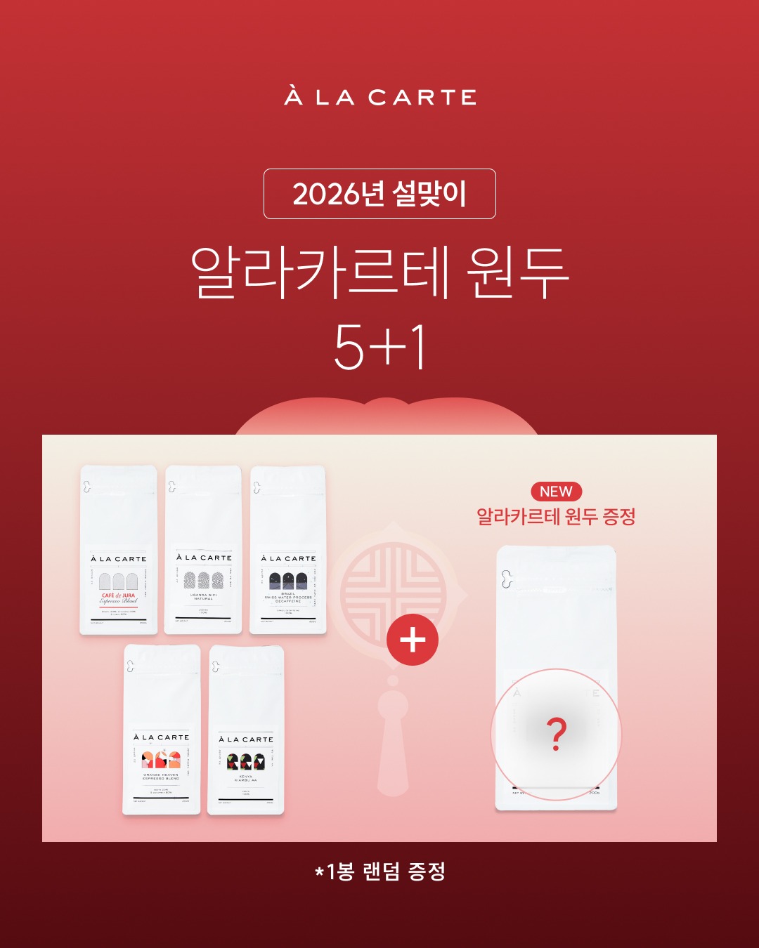 오는 2월 11일까지 알라카르테몰에서 알라카르테 커피 원두 5봉을 구매하시면, 원두 1봉을 추가로 증정하는 프로모션을 진행합니다! 알라카르테몰에는 콜롬비아, 케냐, 탄자니아, 브라질, 과테말라 등 다양한 산지를 기반으로 8가지 싱글오리진 원두와 블렌드 원두를 구매할 수 있는데요. 설 연휴를 앞두고, 싱글오리진 원두를 구매하시면 곧 새로 출시될 원두 중 한 가지를 랜덤으로 선물받을 수 있어요.