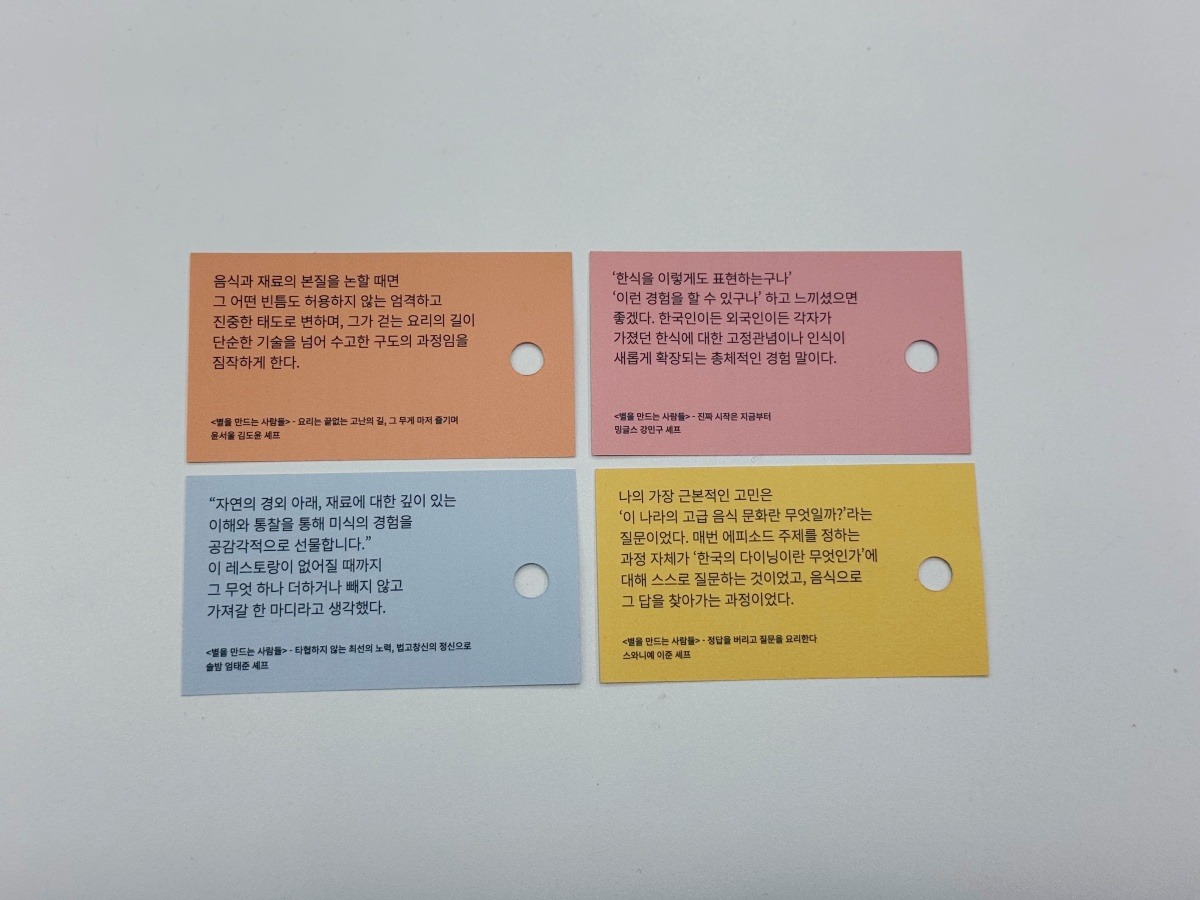김성현 기자가 이번에 출간한 인터뷰집 『별을 만드는 사람들』에는 더 많은 셰프와 소믈리에, 매니저 등 미슐랭 레스토랑을 만드는 사람들의 이야기를 담고 있습니다. 더 자세한 내용이 궁금하다면 인터뷰집 『별을 만드는 사람들」에서 만나보세요.
