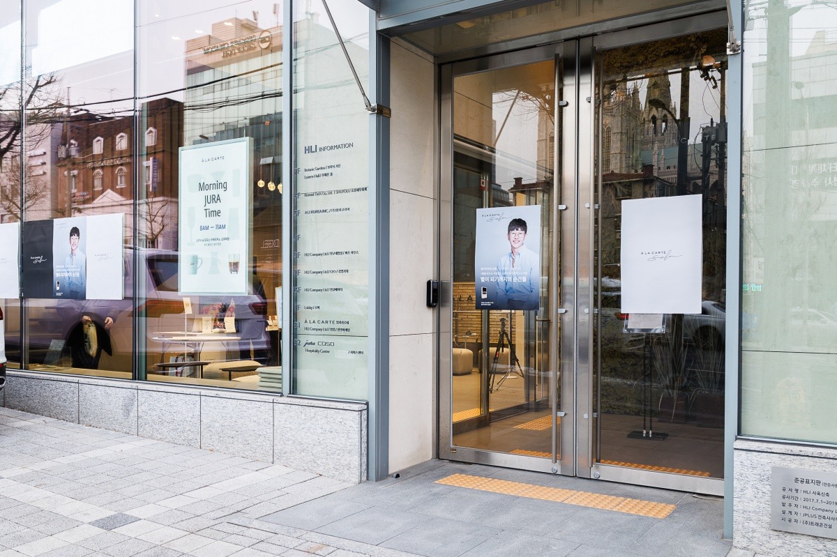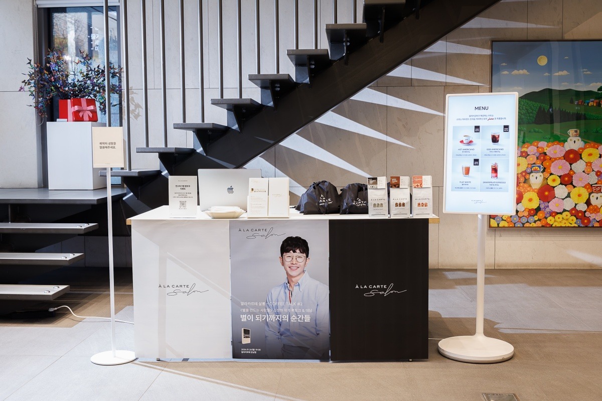 알라카르테 살롱이 열리는 서울 강남구 알라카르테 카페 입구. 오늘의 북토크 주인공 김성현 작가의 포스터가 입구에서 맞이합니다.