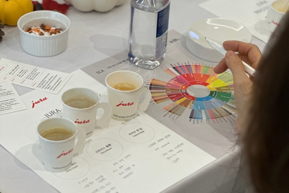 이제 마지막 단계, 직접 맛을 보는 시간이에요. 뜨거움이 조금 가라앉았을 때 스푼으로 떠서 한 모금 머금고, 입안 전체로 퍼지듯 천천히 음미해 보세요. 그 과정에서 자연스럽게 원두별 차이가 드러납니다. 산미가 느껴지는지, 단맛이 은은하게 올라오는지, 바디감은 어떤지 마신 뒤 어떤 향이 입안에 남는지 등 이렇게 비교하다 보면 내가 어떤 맛을 좋아하는지 명확하게 알게 됩니다.
