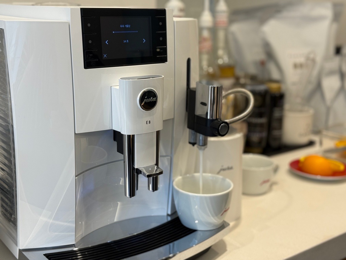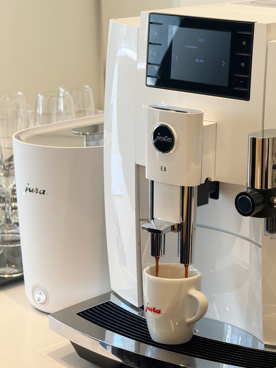 평소에 아메리카노는 물론 부드러운 우유 거품이 어우러진 밀크 베리에이션 메뉴도 즐겨 마셔요. 커피머신 구입을 위해 여러 매장을 방문했을 때, 디자인과 기능, 추출 가능한 메뉴 종류, 관리의 편리함 등 다양한 점을 꼼꼼하게 비교해봤는데요. 유라 E8 G3는 블랙커피도 진하게 추출할 수 있고, 밀크폼도 부드럽고 풍성하게 만들 수 있다는 점이 좋았어요.