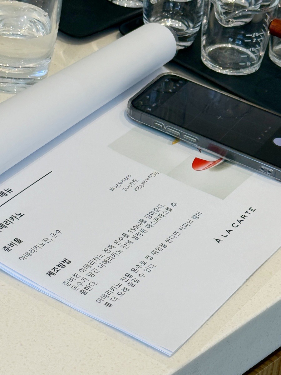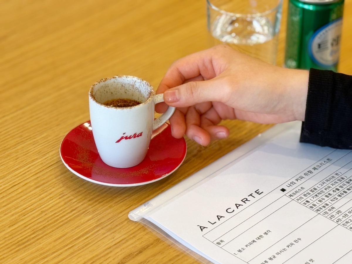 마지막으로, 알라카르테 카페에서 유라 바리스타가 직접 추출한 맛있는 커피로 클래스를 마무리했어요!
