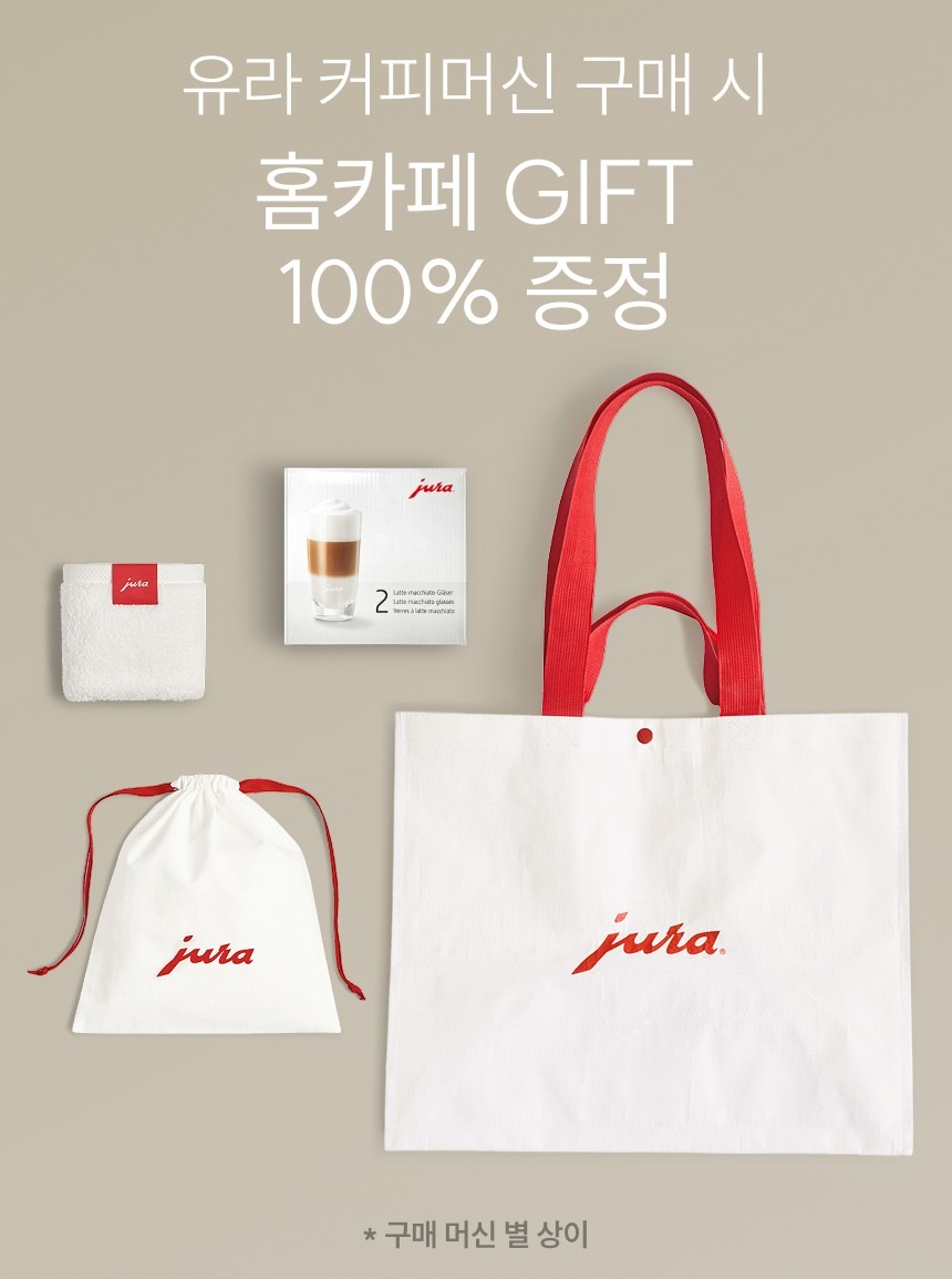 각 라인별로 홈카페의 완성도를 높여줄 홈카페 GIFT 증정 이벤트도 함께 진행합니다. 구매 머신별 구성품에 차이가 있지만, 아래 구성품을 참고하세요.