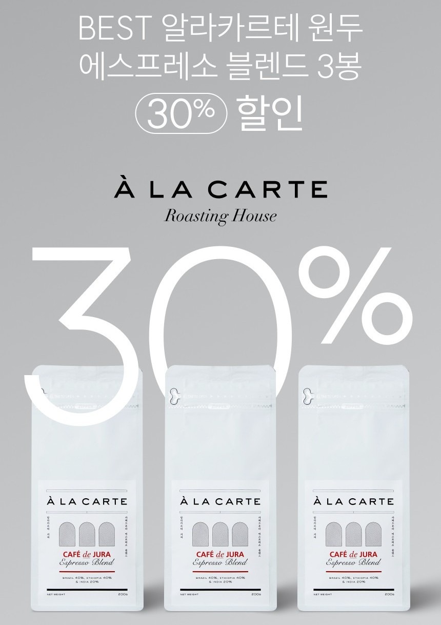 4️⃣ 알라카르테 에스프레소 블렌드 원두 3봉 30% 할인