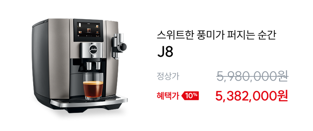 J8은 세계 최초 가정용 스위트 커피머신으로, 에스프레소, 아메리카노, 카페라떼 같은 기본 메뉴부터 코르타도, 스윗폼 커피, 우유 거품까지 총 31가지 메뉴를 지원합니다. 특히 우유 거품을 단독으로 선택할 수 있어 다양한 음료를 직접 만들어 즐길 수 있어요. 전문 바리스타가 내려주는 듯한 다채로운 커피를 집에서도 간편하게 즐기고 싶다면 J8이 좋은 선택이에요.