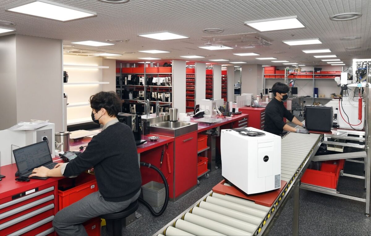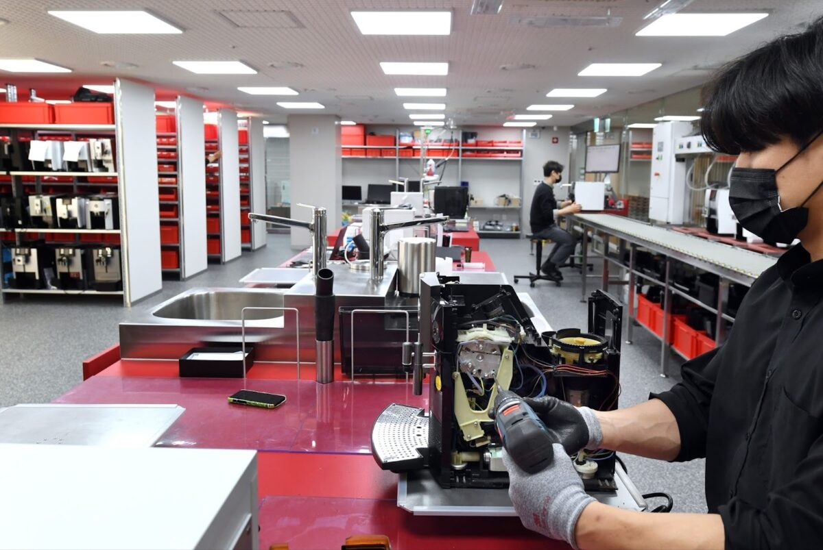 (김재영) 지난 2023년 11월 개관한 유라 호스피탈리티 센터 서울은 아시아에서 두 번째로 설립한 곳인데요. 유라 스위스 본사와 동일한 전용 장비를 활용해 유라 커피머신의 정밀 진단, A/S 수리, 클리닝, 디스케일링, 세척 등 7단계 통합 서비스를 원스톱으로 제공해요. 유라 호스피탈리티 센터 서울은 유라 커피머신 14대를 동시에 점검하고 수리할 수 있어요. 유라 커피머신 사용 중 점검을 받고 싶거나 고장이 의심되면, 유라 호스피탈리티 센터에 방문 또는 전화 접수 등으로 점검과 수리를 신청하실 수 있어요.