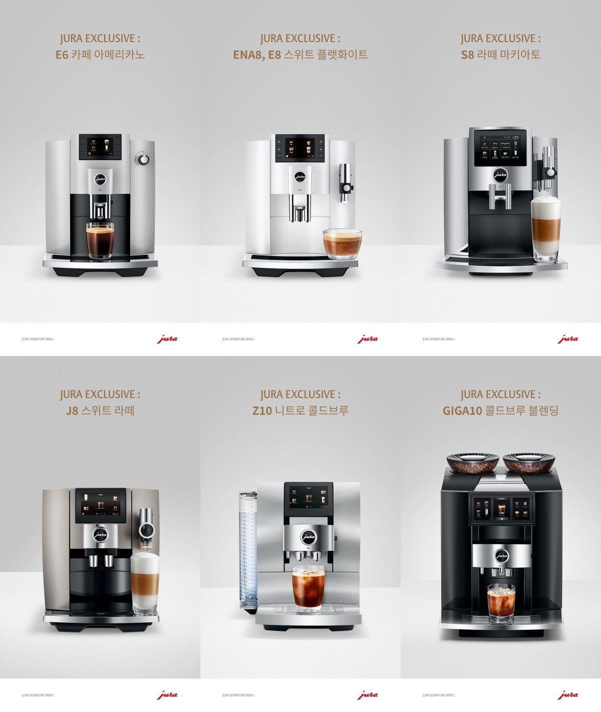 | 유라 익스클루시브 | 카페 아메리카노(E6), 스위트 플랫 화이트(ENA8, E8), 라떼 마키아토(S8), 스위트 라떼(J8), 니트로 콜드브루(Z10), 콜드브루 블렌딩(GIGA10) |