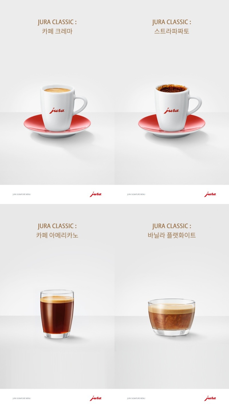 ✔️ 유라 익스클루시브(JURA Exclusive): 유라 커피머신별 기능을 활용해 특장점을 가장 잘 보여주는 시그니처 메뉴